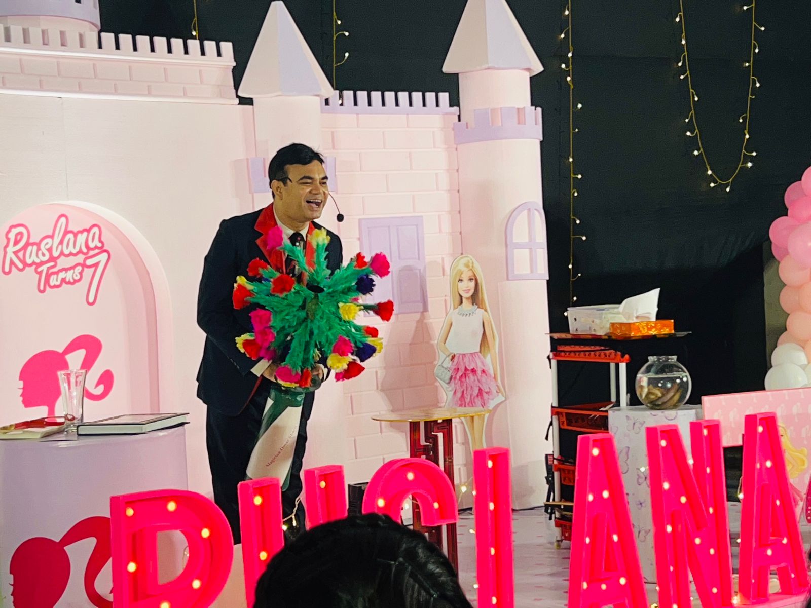 For stage shows, I typically need a sound system (with a wireless mic) and adequate lighting. For close-up magic, no special setup is required.
